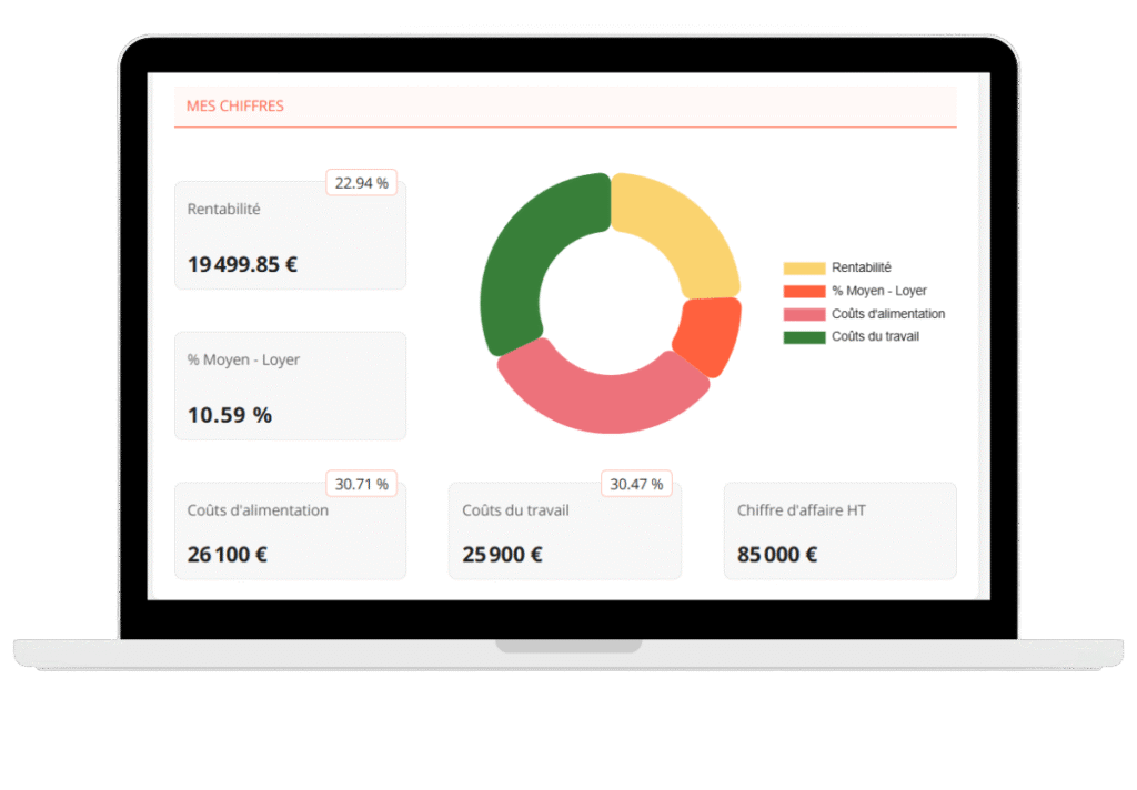 Suivez vos marges en temps réel, poste par poste (loyer, food cost, masse salariale…). Identifiez vos points de vigilance en un coup d’œil.
